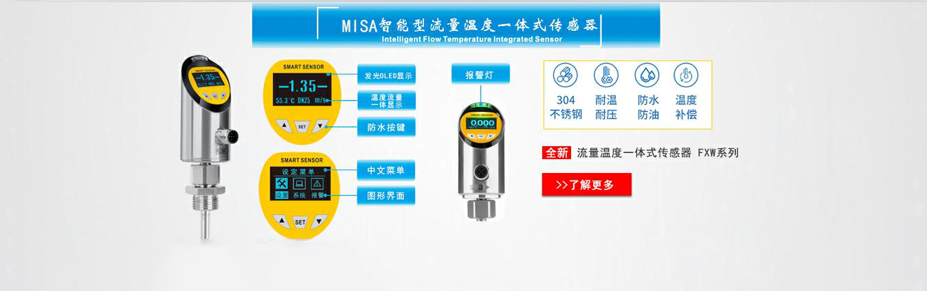 MS-FXN 流量溫度傳感器結(jié)構(gòu)簡單、精確度高、安裝維修使用方便等特點(diǎn),可對(duì)管道中的液體流動(dòng)及溫度情況進(jìn)行實(shí)時(shí)監(jiān)控,提供流量4-20mA信號(hào)或者脈沖信號(hào),報(bào)警開關(guān)輸出,溫度4-20mA信號(hào)及報(bào)警開關(guān)輸出,并采用OLED實(shí)時(shí)顯示流體流量及溫度,實(shí)現(xiàn)管道當(dāng)中溫度流量一體式的監(jiān)控功能。被廣泛應(yīng)用于石油化工、電力、治金、鋼廠、造紙、食口品加工、水處理、電池廠等行業(yè)。